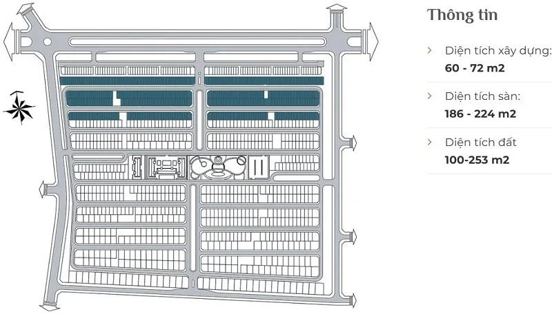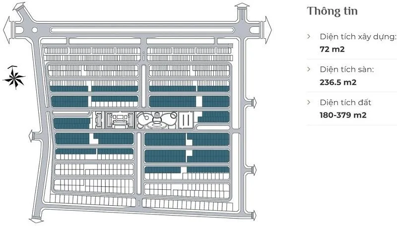 Quy mô dự án: 40 Ha với 1093 căn Shophouse + Biệt thự Song lập + Biệt thự Đơn lập.